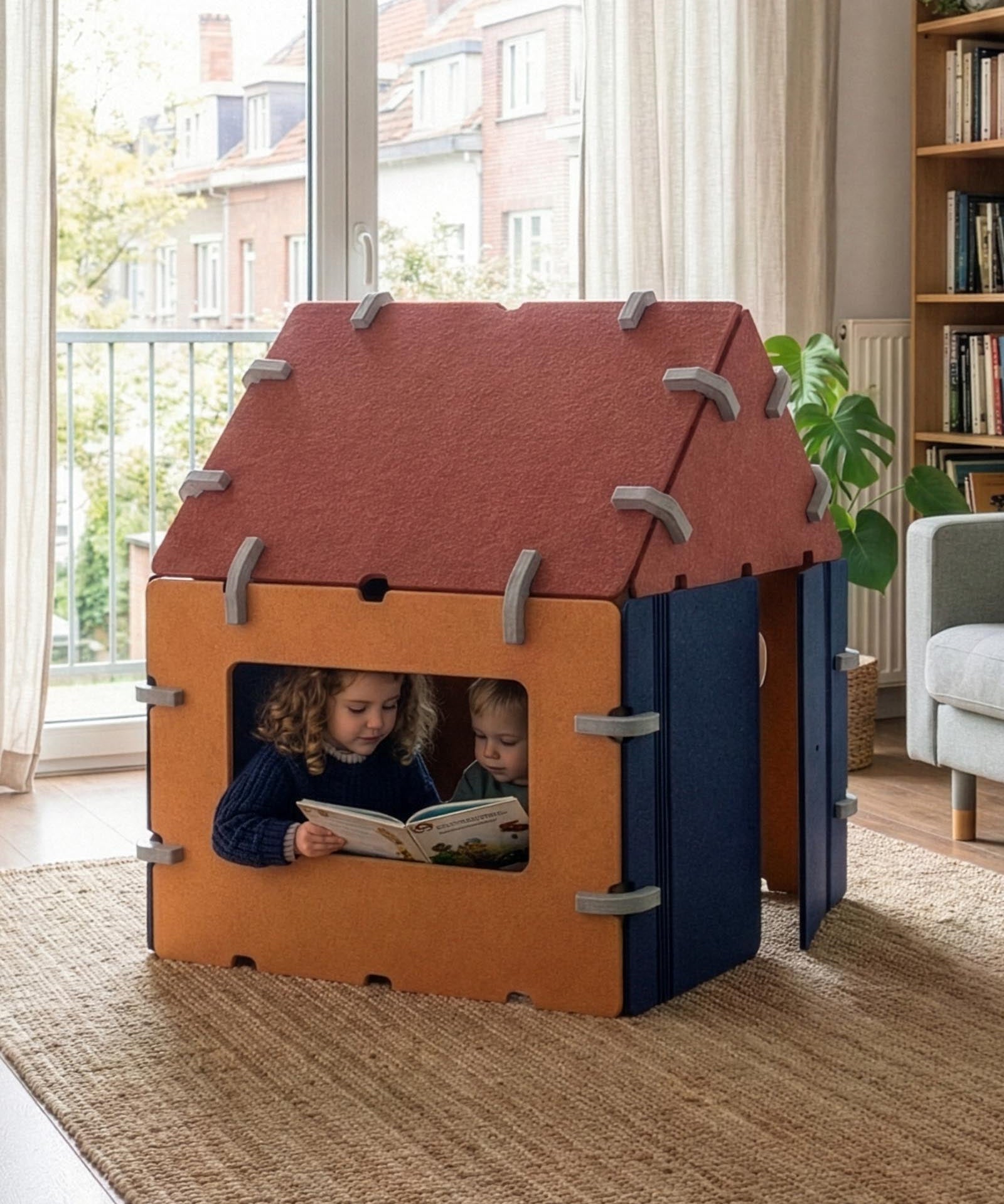 Aufgebaut passt Wuule gut in typische Wohn- und Kinderzimmer. Der Clou: Das Spielhaus ist so leicht, dass du es im Ganzen einfach zur Seite schieben kannst. Und wenn du den Raum mal komplett anders nutzen willst? Einfach zerlegen, flach stapeln und platzsparend in der Tasche verstauen.