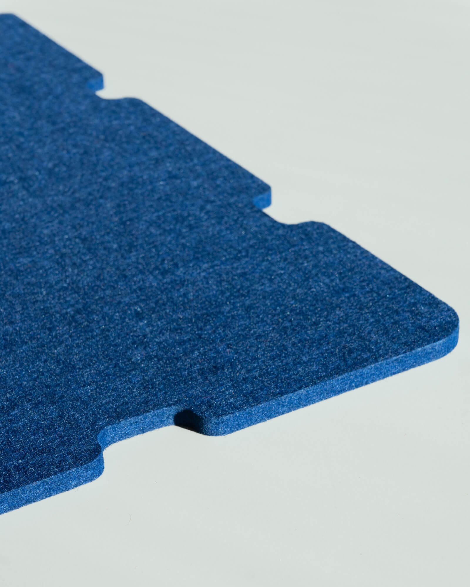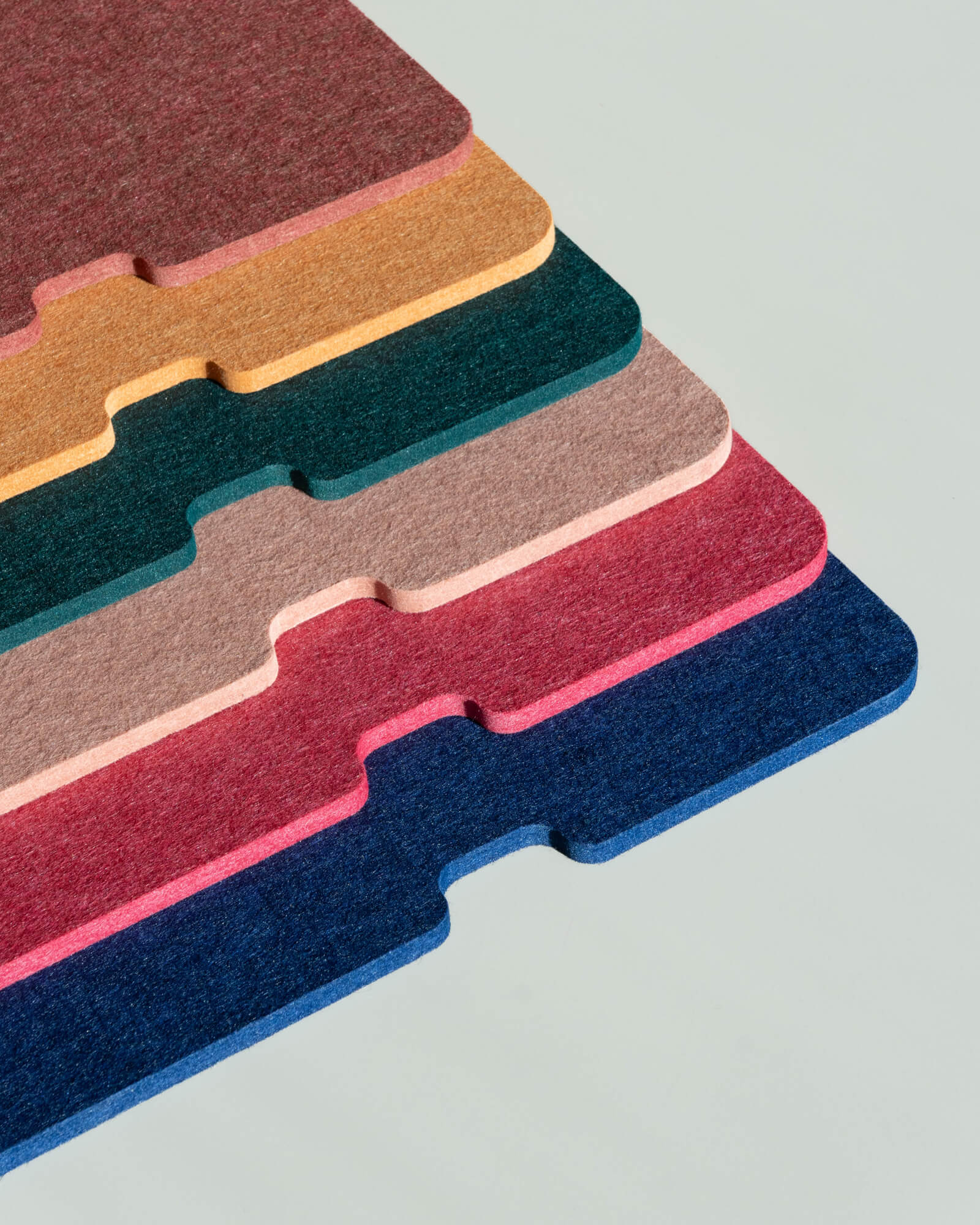 Unser PET-Filz besteht zu mindestens 75 % aus Post-Consumer-Rezyklat. Aus rund 150 Plastikflaschen pro Haus wird ein langlebiges Design-Möbel. Als Monomaterial-System verzichtet Wuule konsequent auf Werkstoff-Mixe und ist dadurch voll kreislauffähig.