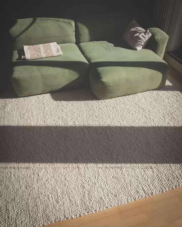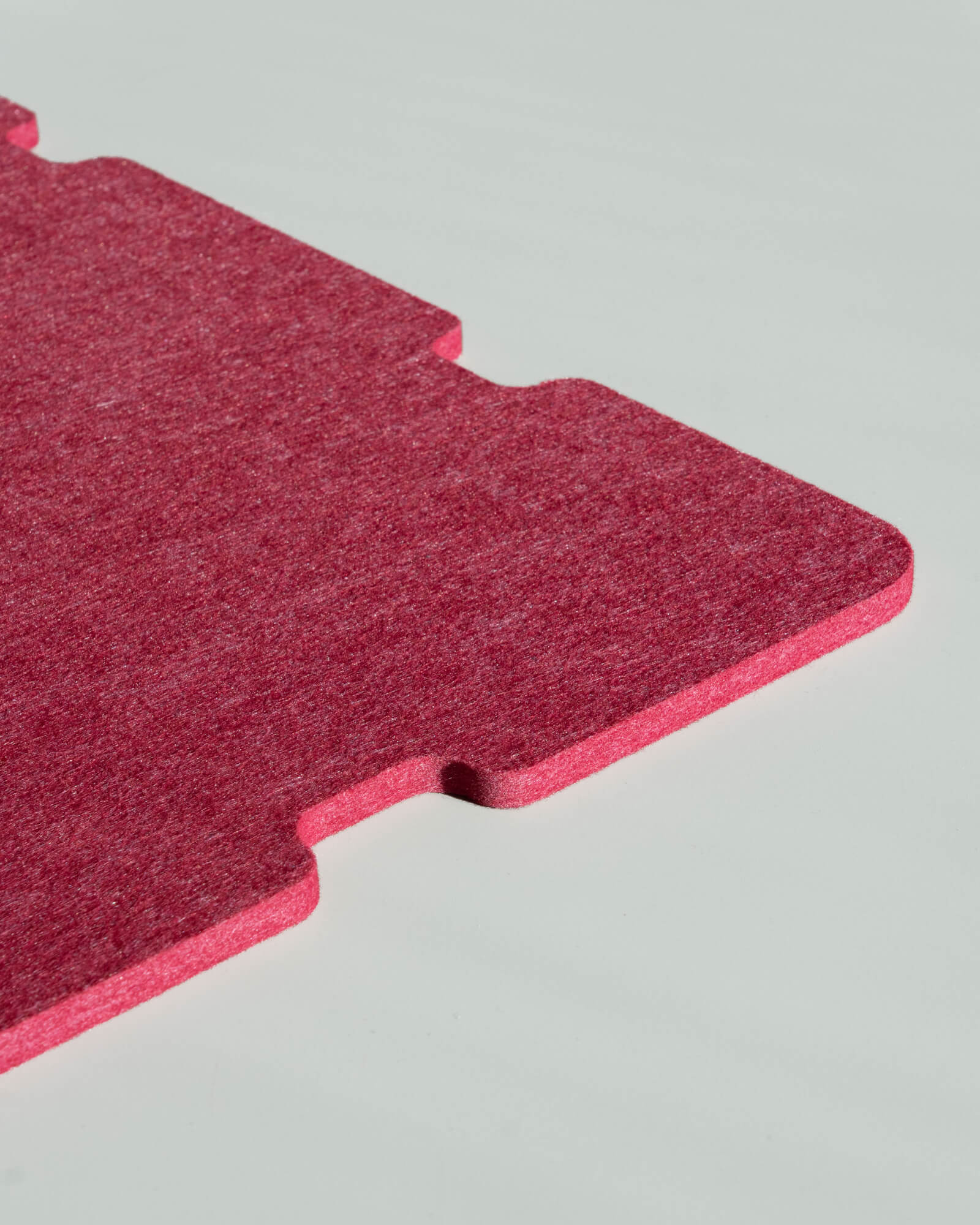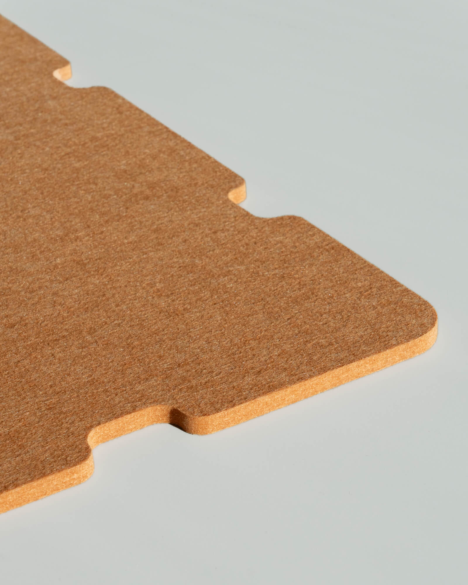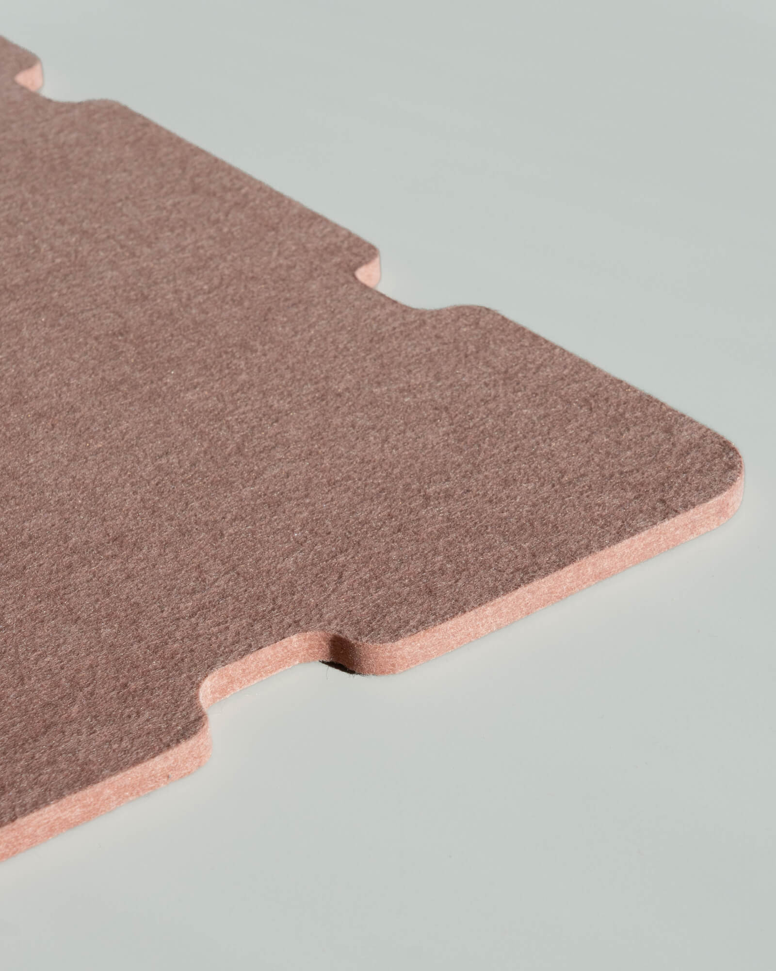 Viele verbinden Filz mit weichen Dekoartikeln. Wir nutzen jedoch deutlich robusteren, formstabilen PET-Filz. Das Material ist langlebig und im Alltag erstaunlich unempfindlich. Staub lässt sich einfach absaugen, kleine Flecken mit einem feuchten Tuch entfernen.