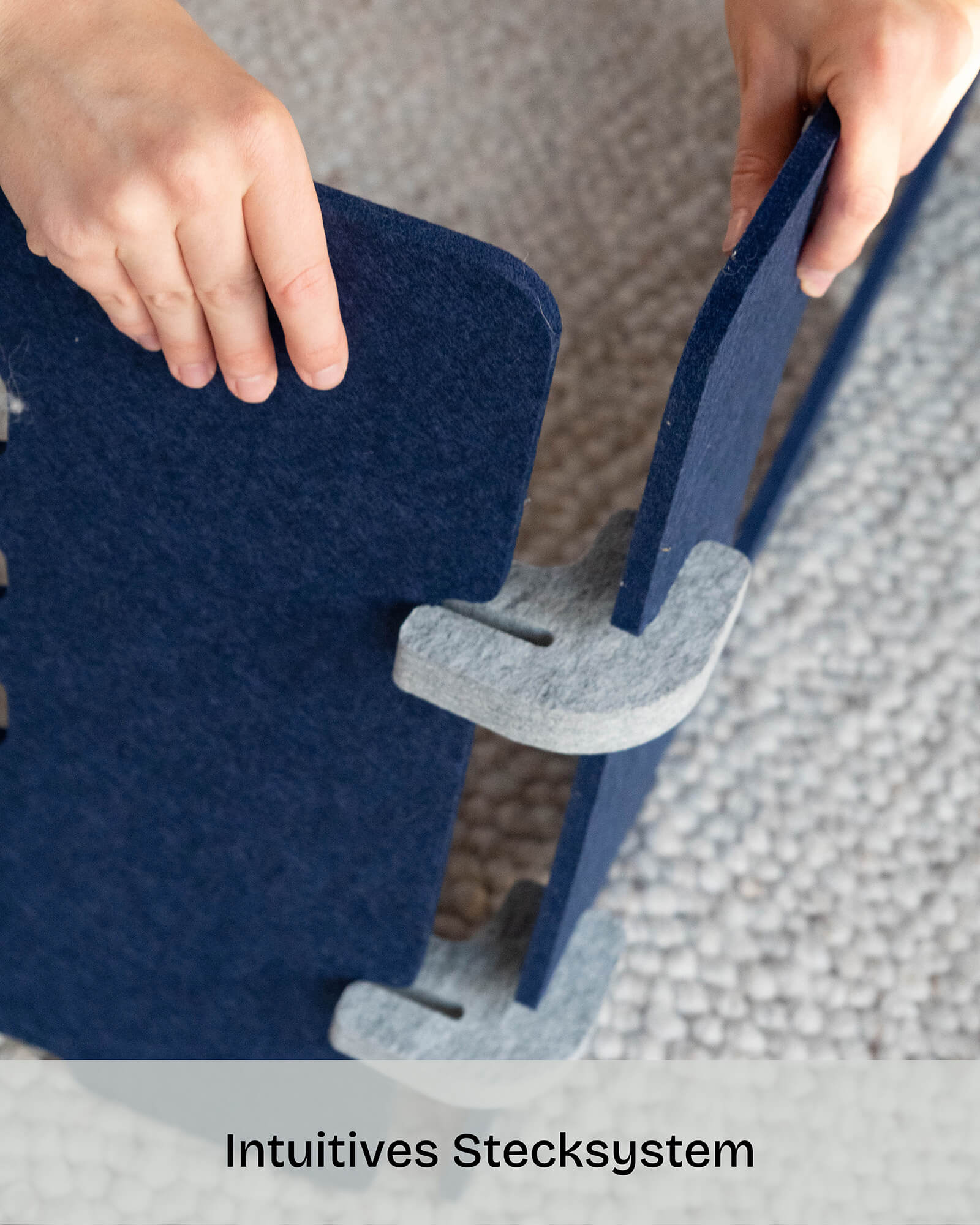 Absolut. Durch unser speziell entwickeltes Stecksystem und die festen Verbinder entsteht eine erstaunlich hohe Stabilität. Anders als Karton knickt der Filz nicht ein, sondern ist flexibel und kehrt in seine Form zurück. Es hält wildem Spielen stand, ohne dass (wie bei Holz) harte Kanten gefährlich werden.