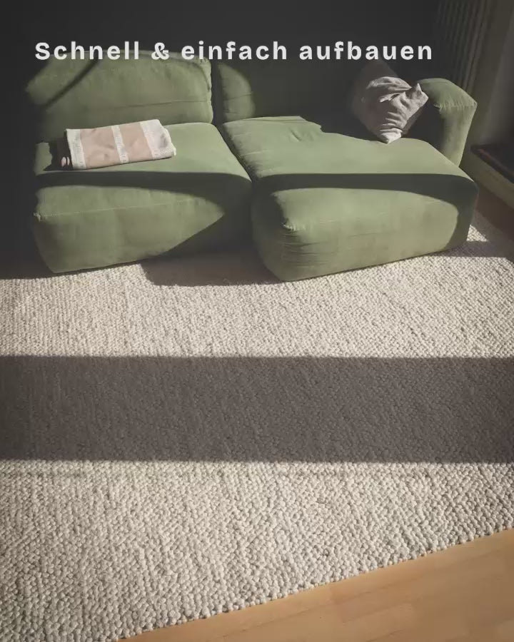 Ja, Wuule ist zwar vor allem für den Innenbereich gemacht, du kannst es bei gutem Wetter aber auch draußen aufbauen. Wenn der Filz nass wird, saugt er sich voll und wird kurzzeitig schwer, trocknet aber wieder vollständig. Draußen bleiben sollte Wuule nicht.