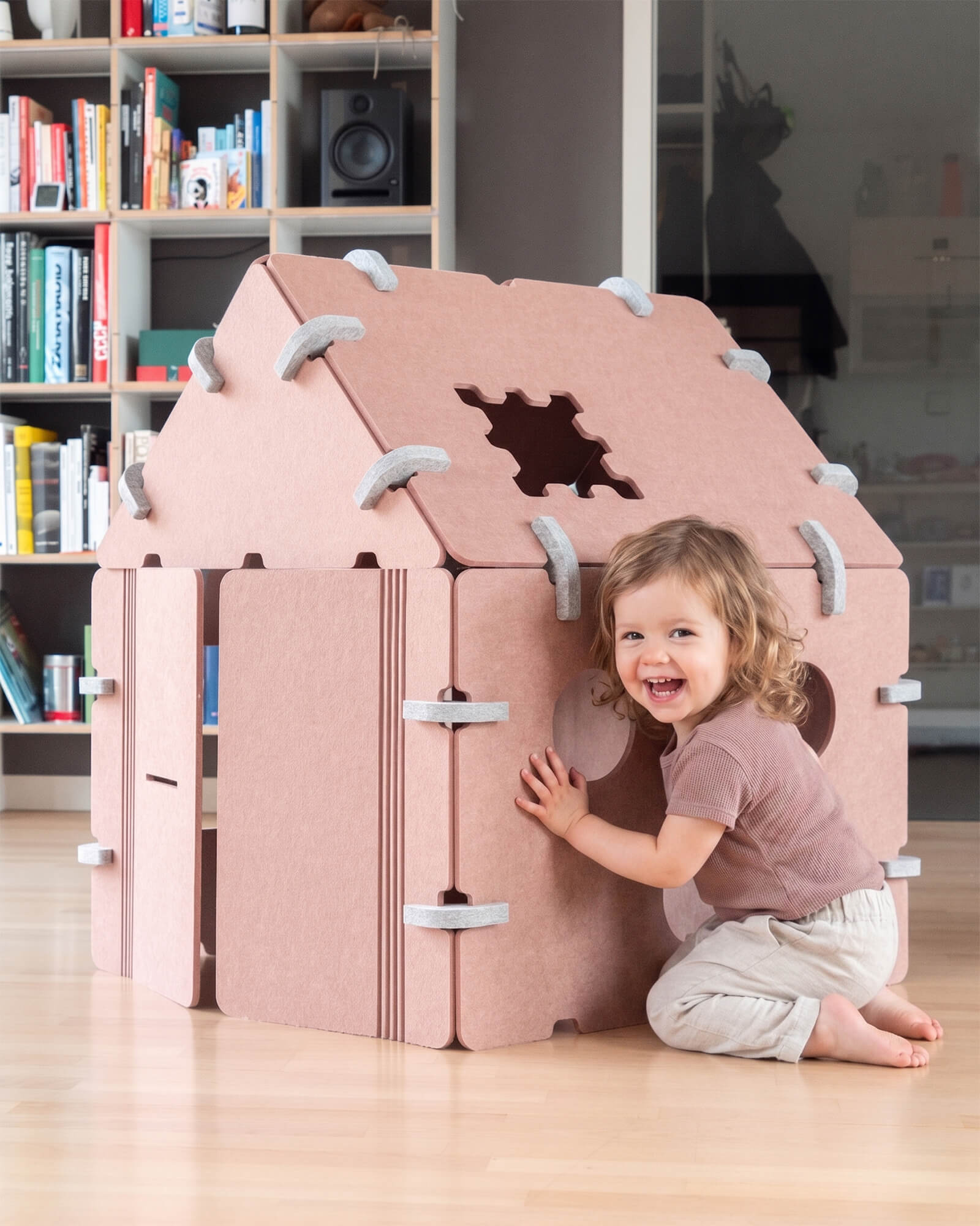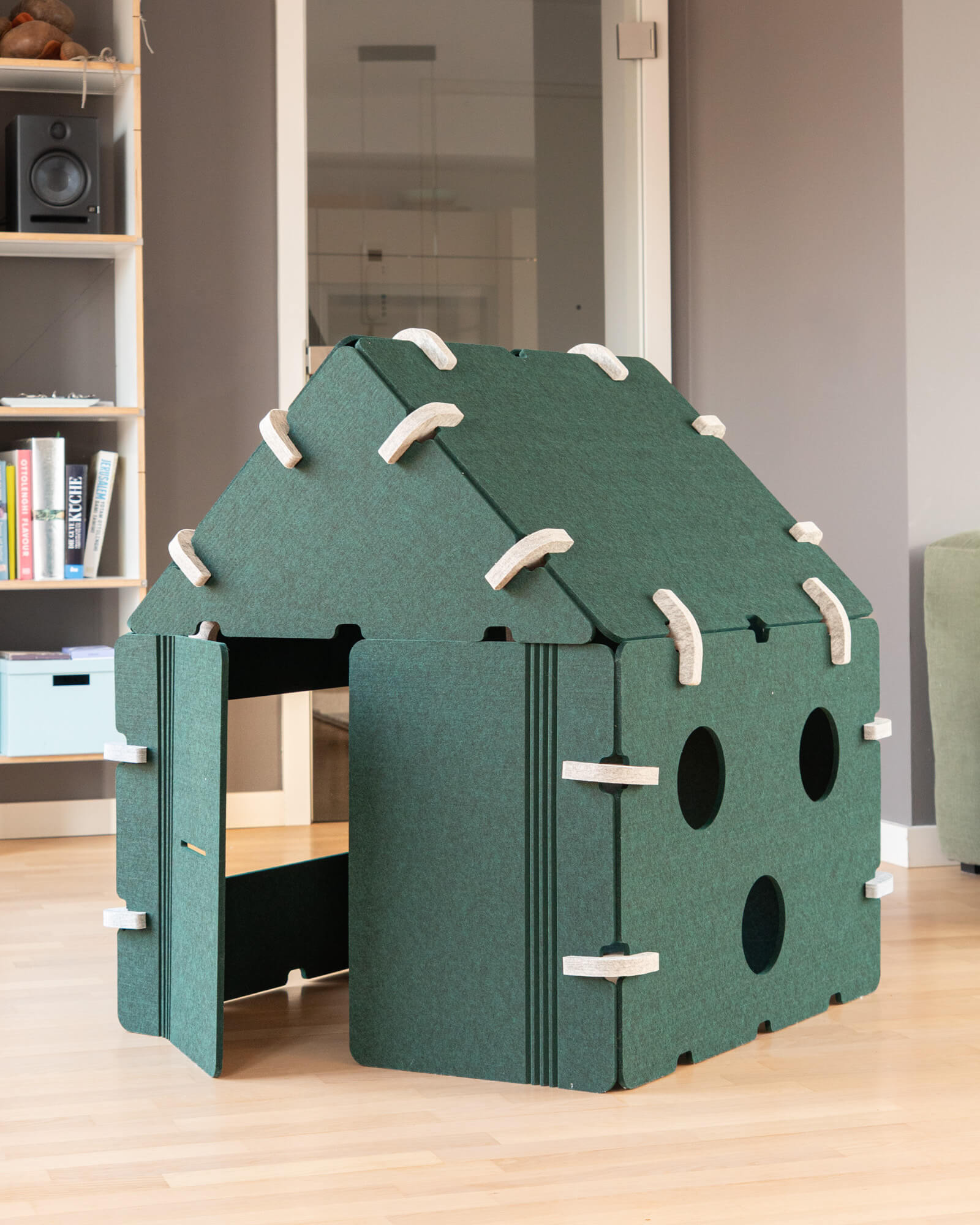 Aufgebaut passt Wuule gut in typische Wohn- und Kinderzimmer. Der Clou: Das Spielhaus ist so leicht, dass du es im Ganzen einfach zur Seite schieben kannst. Und wenn du den Raum mal komplett anders nutzen willst? Einfach zerlegen, flach stapeln und platzsparend in der Tasche verstauen.